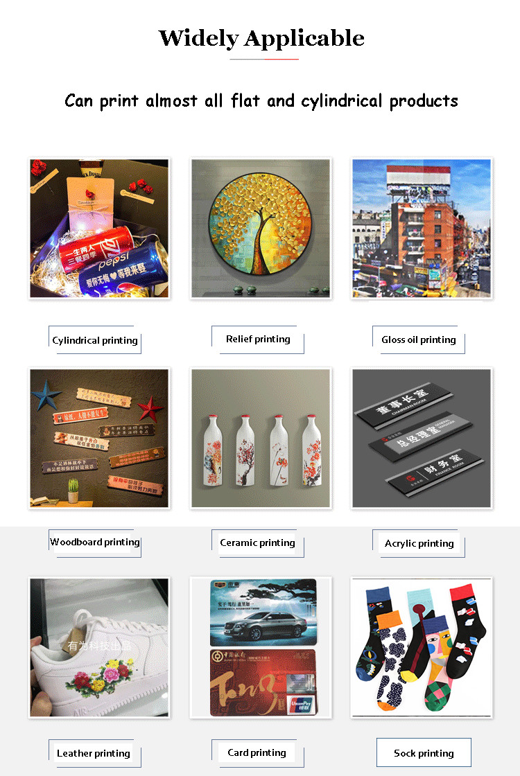 Pencetakan UV adalah teknologi tinggi, bebas pelat, pencetakan digital penuh warna. Ini tidak terbatas oleh bahan. Ini dapat digunakan pada logam, plastik, pintu geser, pintu geser, kaca, piring, berbagai tanda,kristal, PVC, akrilik, batu, kulit, dll. cetakan foto-tingkat warna di permukaan.ketahanan abrasi, perlindungan UV, operasi sederhana dan nyaman, kecepatan gambar cetak cepat, dan sepenuhnya sesuai dengan standar pencetakan industri.